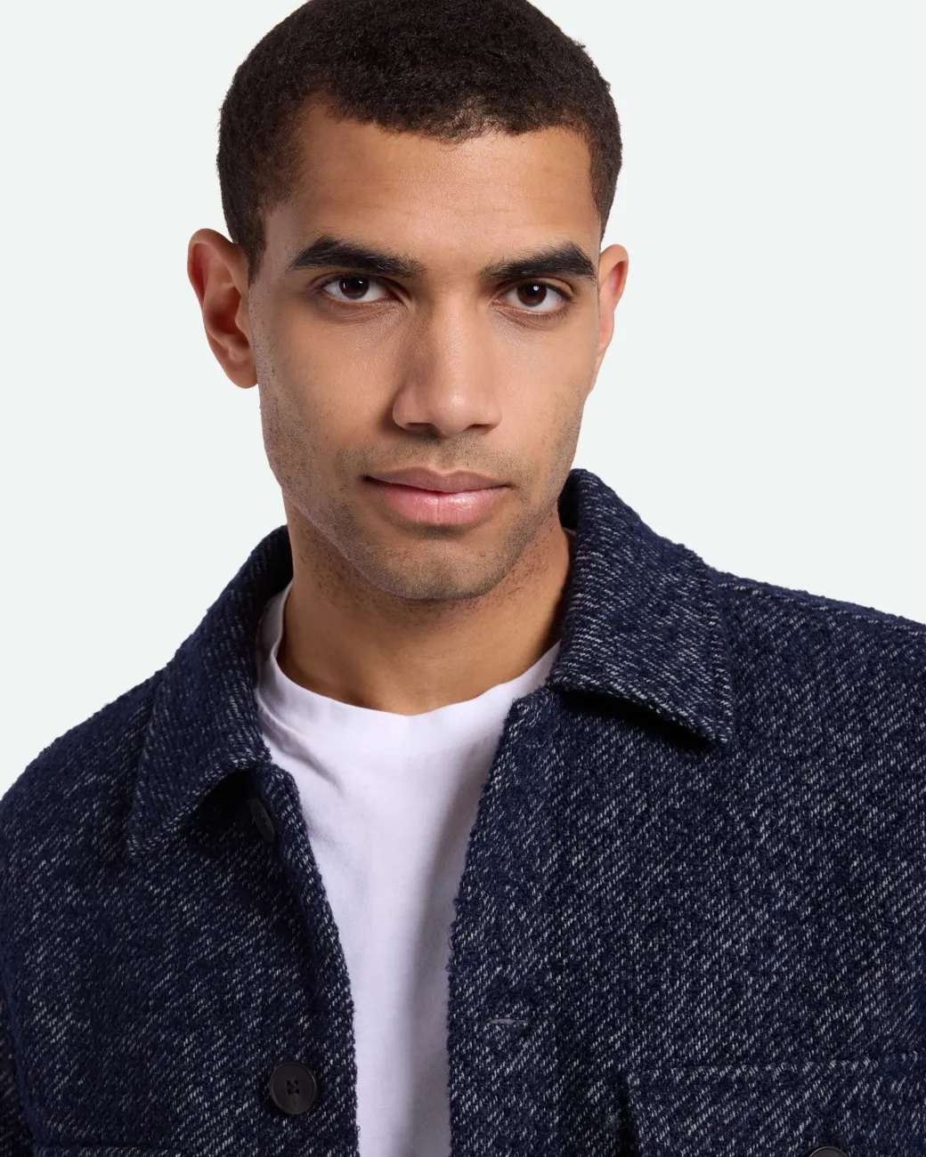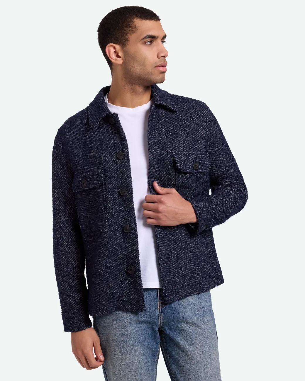 Arjuna is a light jacket made from 50% wool and 50% polyester for a warm and comfortable quality. The jacket has a regular fit and is designed in a nice twill structure with two chest pockets, a collar and button closure. The model is 188 cm tall and wears a size large.