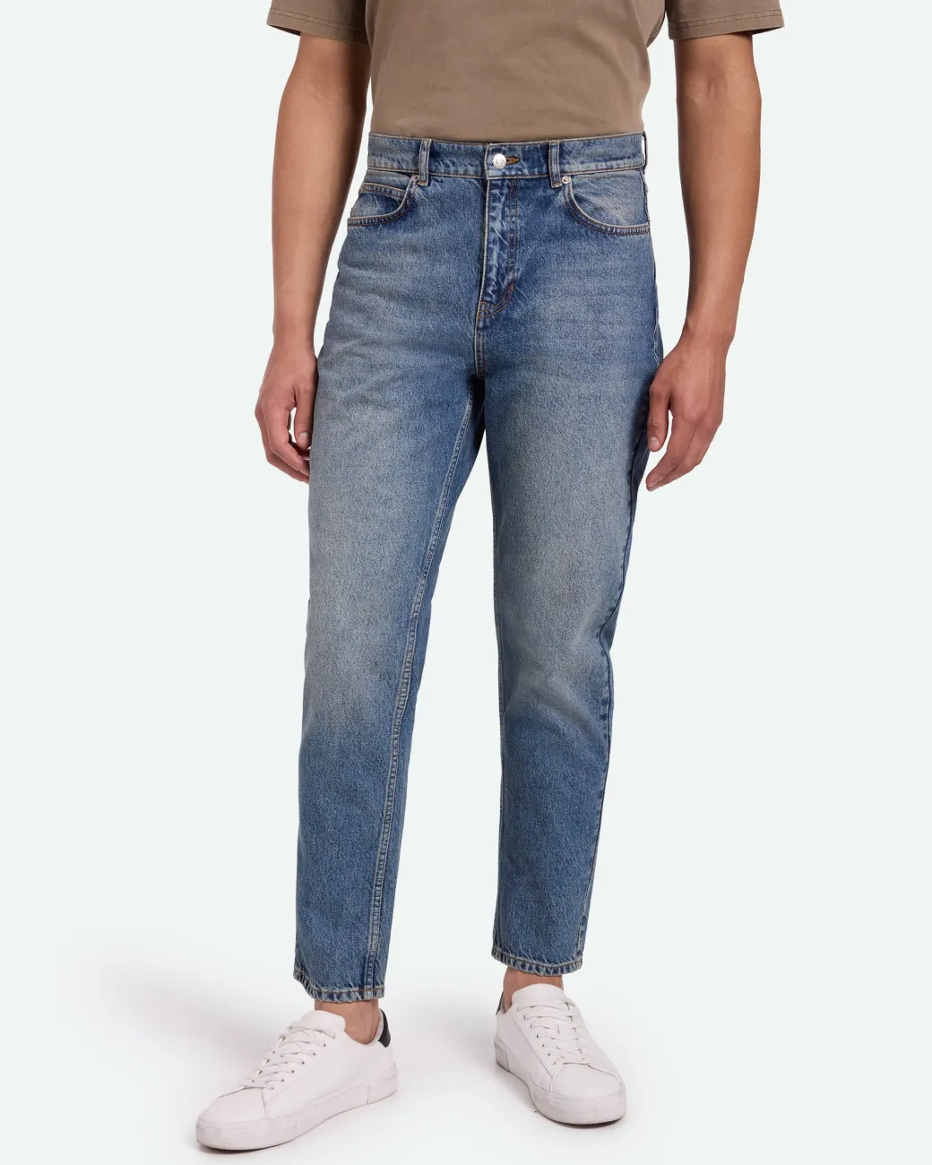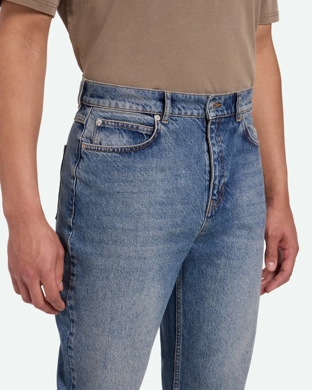 Arrow is a pair of light blue jeans made from 100% cotton for a comfortable quality. The jeans have a regular fit and are designed with five pockets, zip closure and belt loops. The model is 188 tall and wears a size 32.