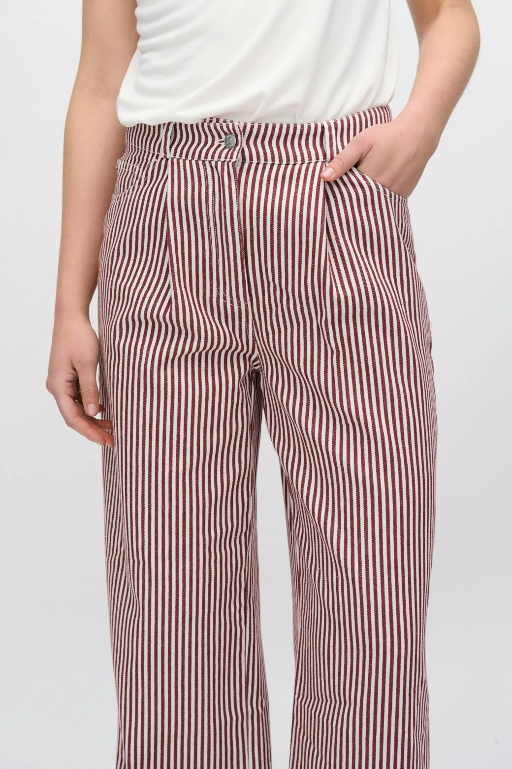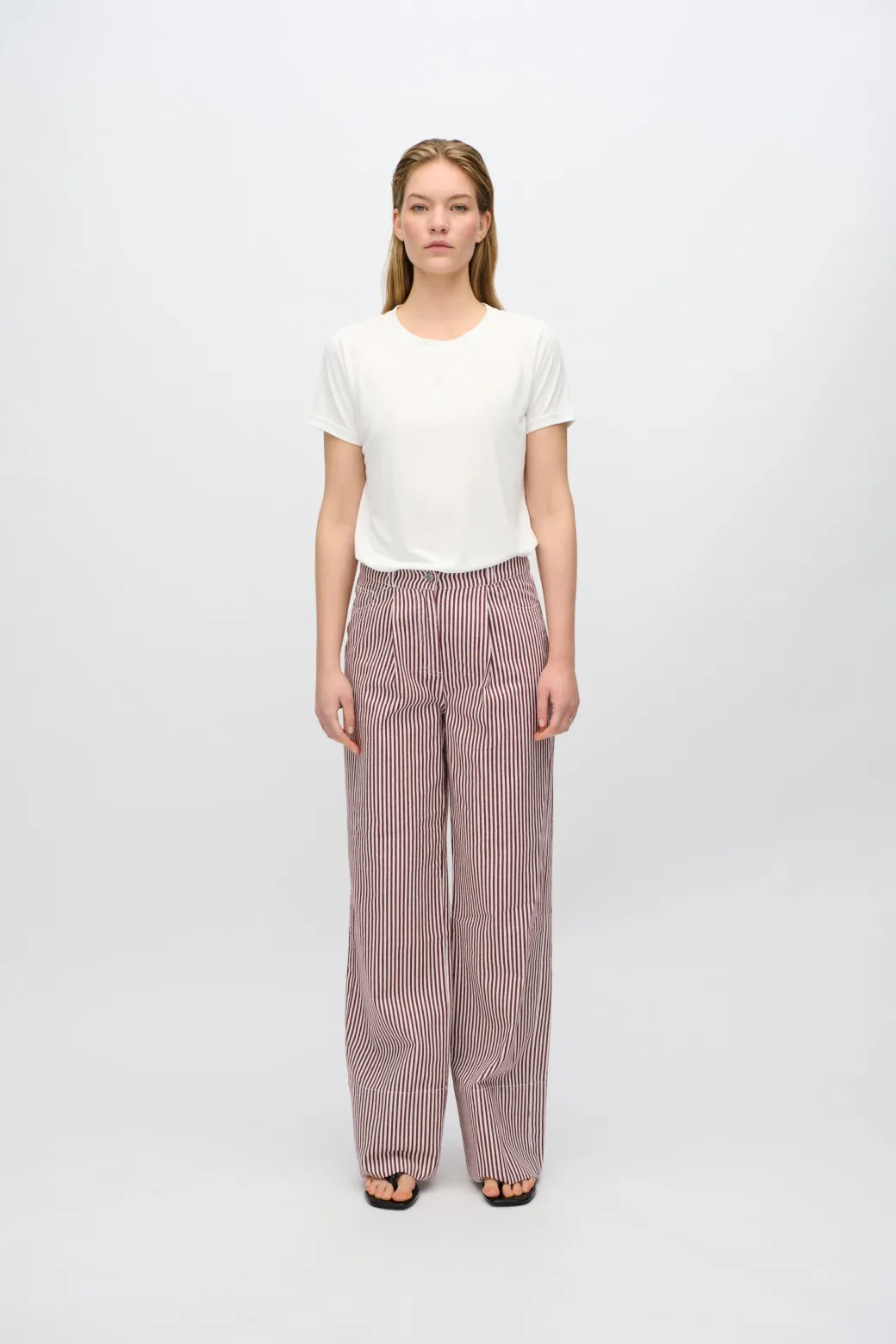 Update your wardrobe with the classic and modern Elisa striped jeans, made from a soft and breathable blend of cotton and viscose. These jeans offer both comfort and style with their straight leg, which provides a flattering fit and a clean, sharp look.Designed in a striped material, the jeans add a unique and eye-catching element to your look, while the front and back pockets, belt loops and fly provide the classic details that make these jeans both functional and versatile.The Elisa striped jeans are perfect for both casual and dressy looks. Wear them with a simple t-shirt and sneakers for an everyday look, or style them with a blazer and heels for a more sophisticated style.