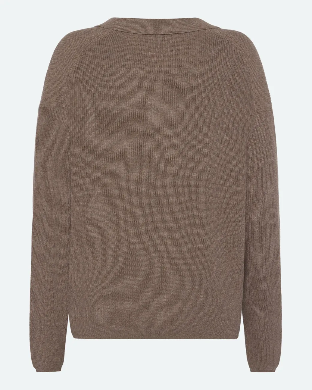 Our Ella knitted sweater in a soft cotton and cashmere blend is the perfect choice for those who want both comfort and elegance. The material is lightweight, breathable and incredibly soft against the skin, while the cashmere adds a luxurious feel and extra warmth. The sweater is designed with a stylish V-neck and a classic collar that gives a sophisticated touch. The long sleeves make it ideal for both cooler days and as a layering element in your winter look.The simple yet elegant silhouette makes the sweater versatile and easy to style. Wear it for everyday wear with jeans or skirts for a casual yet stylish look, or combine it with more formal trousers for the office. The timeless style makes it an essential element in any wardrobe that seeks both comfort and a sophisticated expression.This knitted sweater is a luxurious and practical choice that offers both warmth and elegance at the same time.