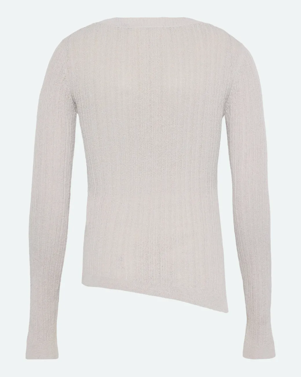 Add a unique twist to your everyday style with our knitted Emily sweater, which combines Scandinavian minimalism with modern details. This long-sleeved sweater with a round neck and an elegant asymmetrical hem is the perfect choice for women who appreciate timeless design with a creative expression.The asymmetrical hem adds a dynamic look that makes the sweater both stylish and eye-catching. With its relaxed fit and clean lines, the sweater is easy to style – perfect over jeans for a casual everyday look or paired with a skirt for a more polished outfit.Made from a soft knit blend of recycled cotton and linen, it provides optimal comfort and a luxurious finish. The long sleeves and round neck make the sweater versatile and suitable for all seasons.Available in classic and earthy shades such as warm beige, deep burgundy and black, which can be easily matched with your existing wardrobe.This sweater offers the best of both worlds – a timeless silhouette with a modern edge. Perfect for those who want a versatile and stylish addition to their wardrobe.