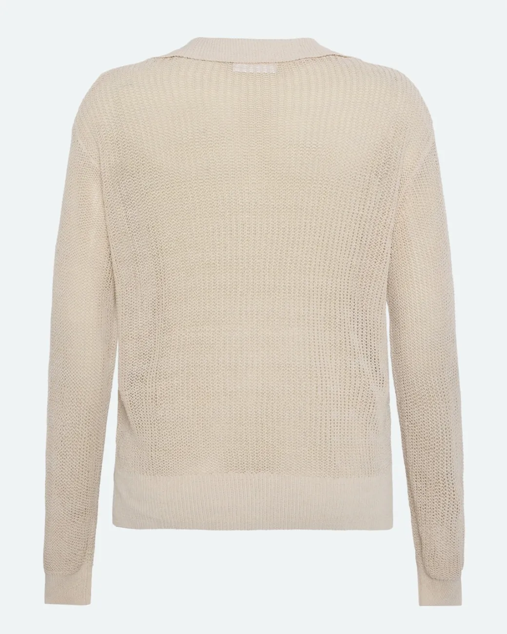 Meet your new go-to jumper: Lineas is a knitted polo jumper that combines Scandinavian simplicity with modern elegance. Designed in a lightweight and breathable yarn with a subtle texture that feels like a soft embrace against the skin.The classic polo collar gets an updated twist with clean lines and an elegant, loose fit, making the sweater perfect for both everyday wear and casual dinners. Pair it with tailored trousers for a sophisticated look, or style it with your favorite jeans for an effortless, cool vibe.Available in neutral tones that blend into any wardrobe and let you create timeless outfits with a touch of Nordic charm.