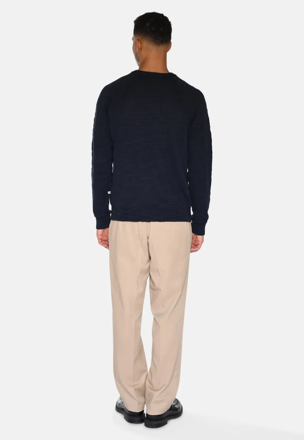 Our basic Alfredo men’s knit sweater is made from a comfortable blend of cotton and linen, giving the sweater a light, breathable and natural feel. The simple design makes it a perfect choice for both casual and more dressed-up outfits.The sweater has long sleeves, a classic round neck and ribbed edges, which give it a stylish and timeless look. The loose fit makes it easy to style, and it works well as a layer under a jacket or on its own as a casual element.Wear it with jeans and sneakers for a relaxed look, or style it with chinos for a more sophisticated and relaxed style. An essential part of the modern man’s wardrobe, where comfort and style are in focus.