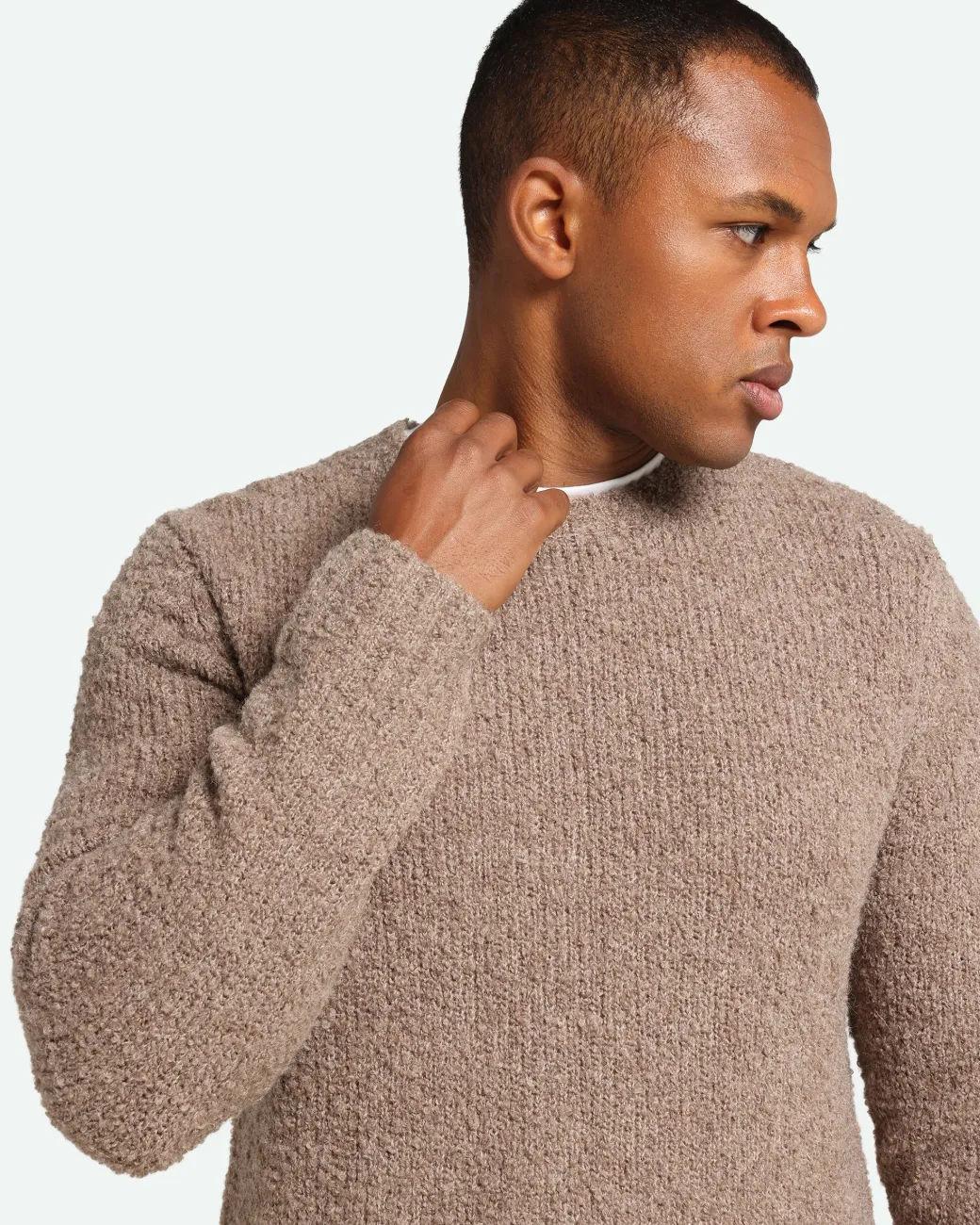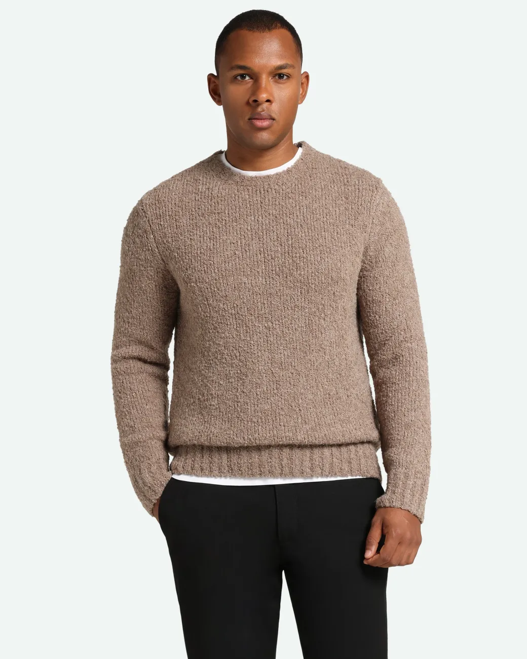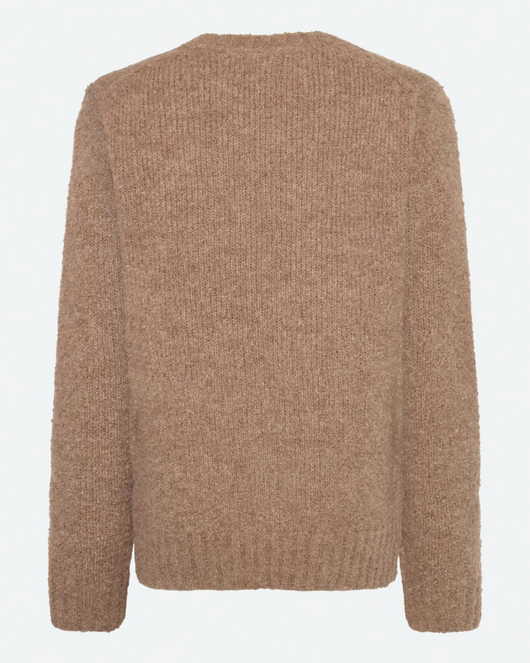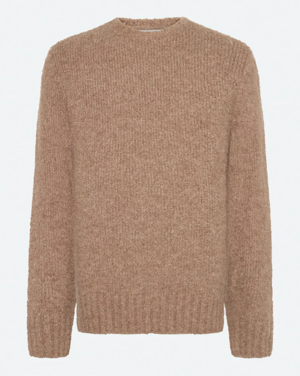Daxan is a knitted jumper made from 50% acrylic, 20% wool, 20% alpaca and 10% nylon for a warm and soft quality. The jumper has a regular fit and a classic design with an O-neck and ribbed edges. The model is 185 cm and wears a size large.