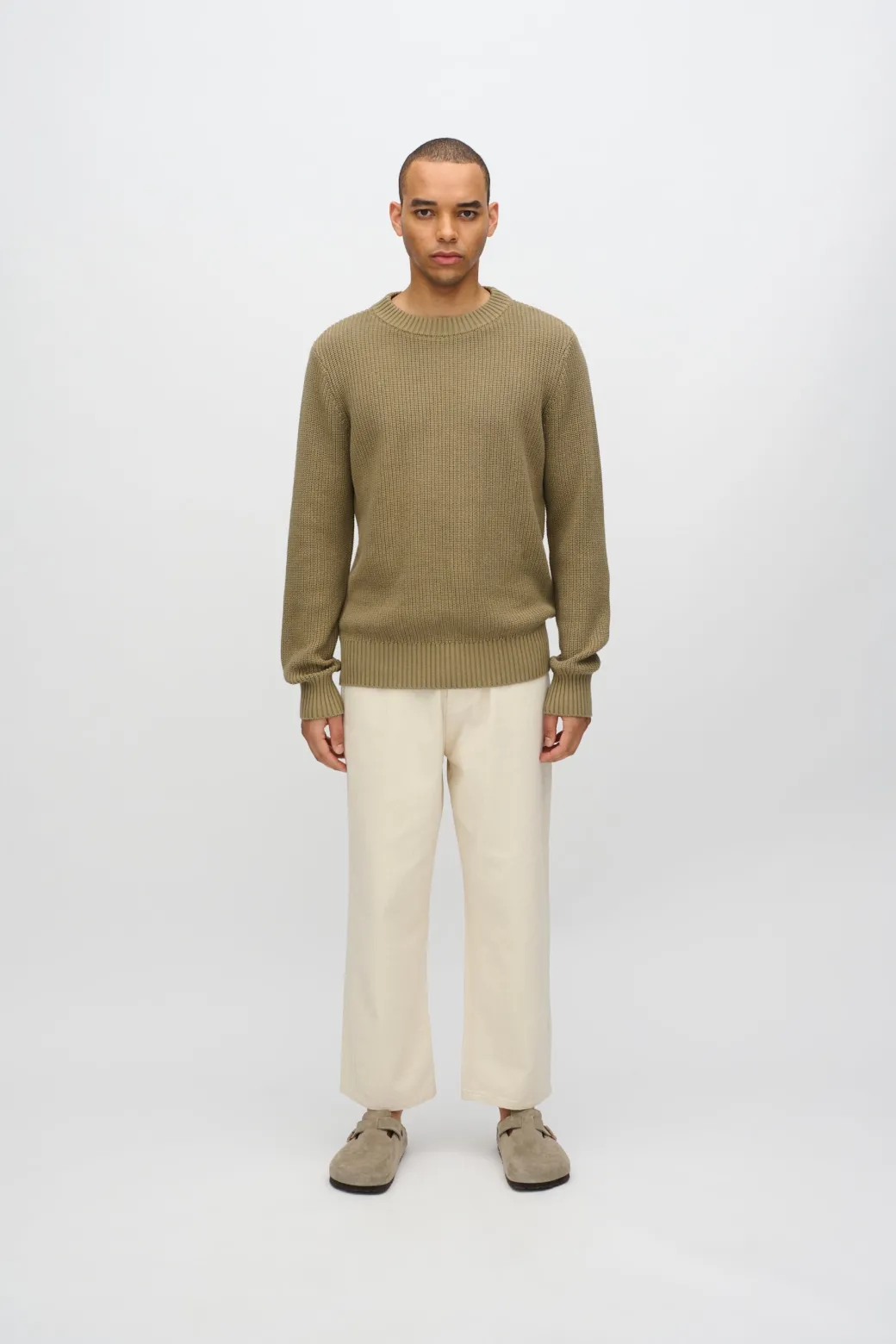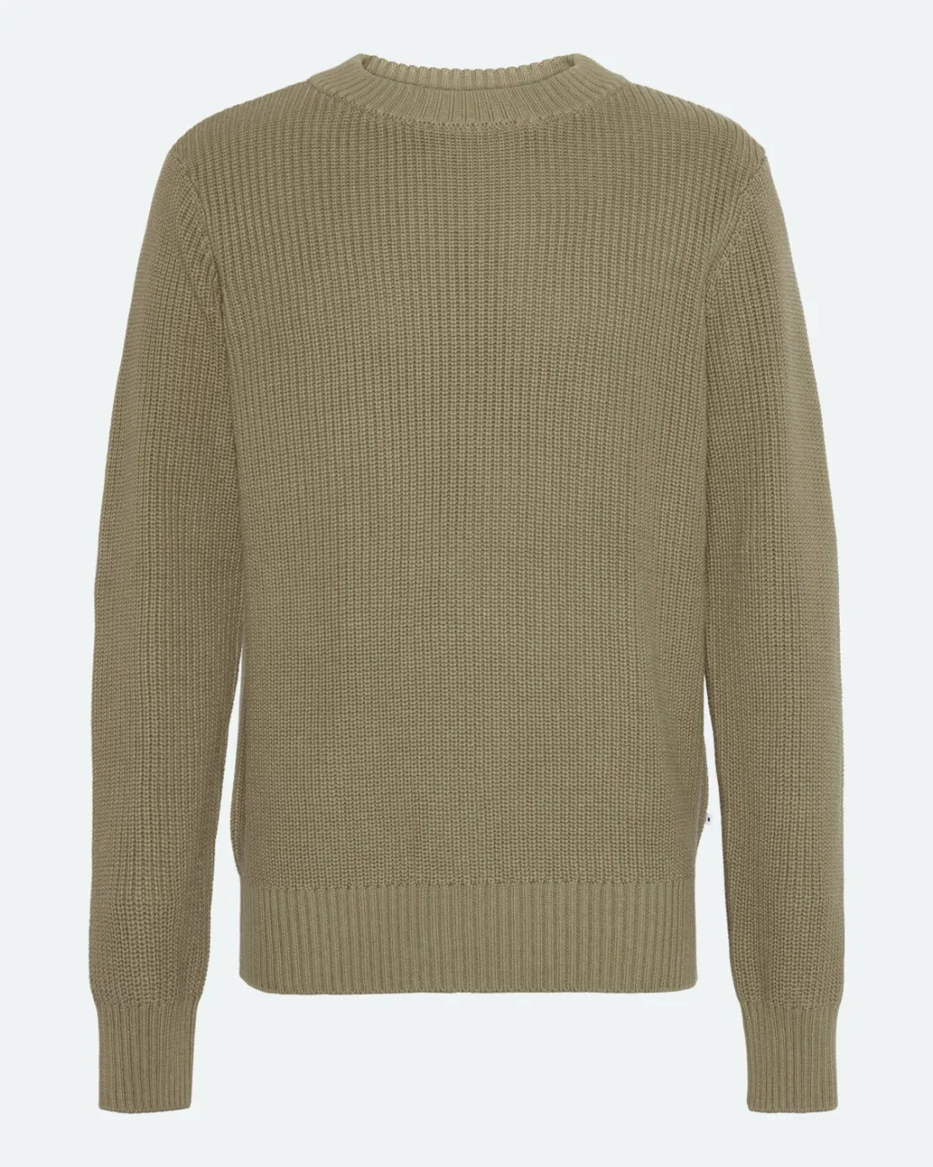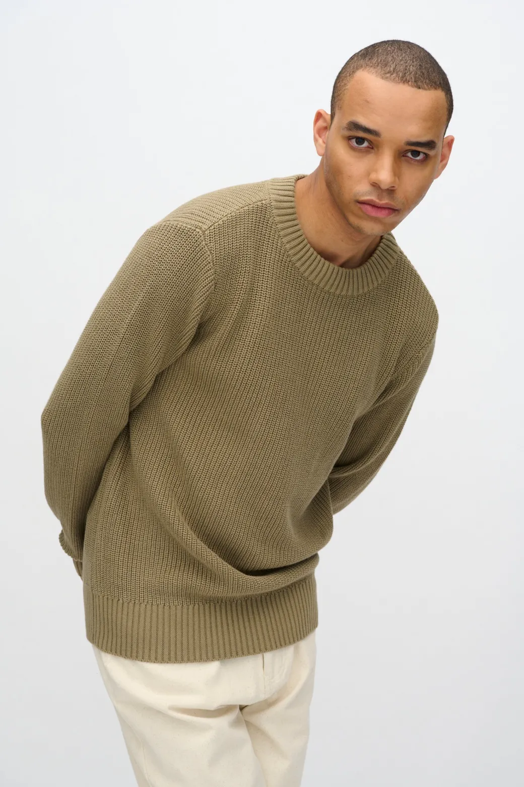 This basic knit sweater is made from 100% organic cotton, which feels soft and comfortable against the skin. The sweater has a ribbed structure that adds texture and a classic look to the simple design.The round neckline and ribbed edges at both the sleeves and bottom create a timeless look that can be easily combined with both casual and more formal clothes. The sweater is a versatile choice that is perfect for everyday wear and ensures comfort without compromising on style.