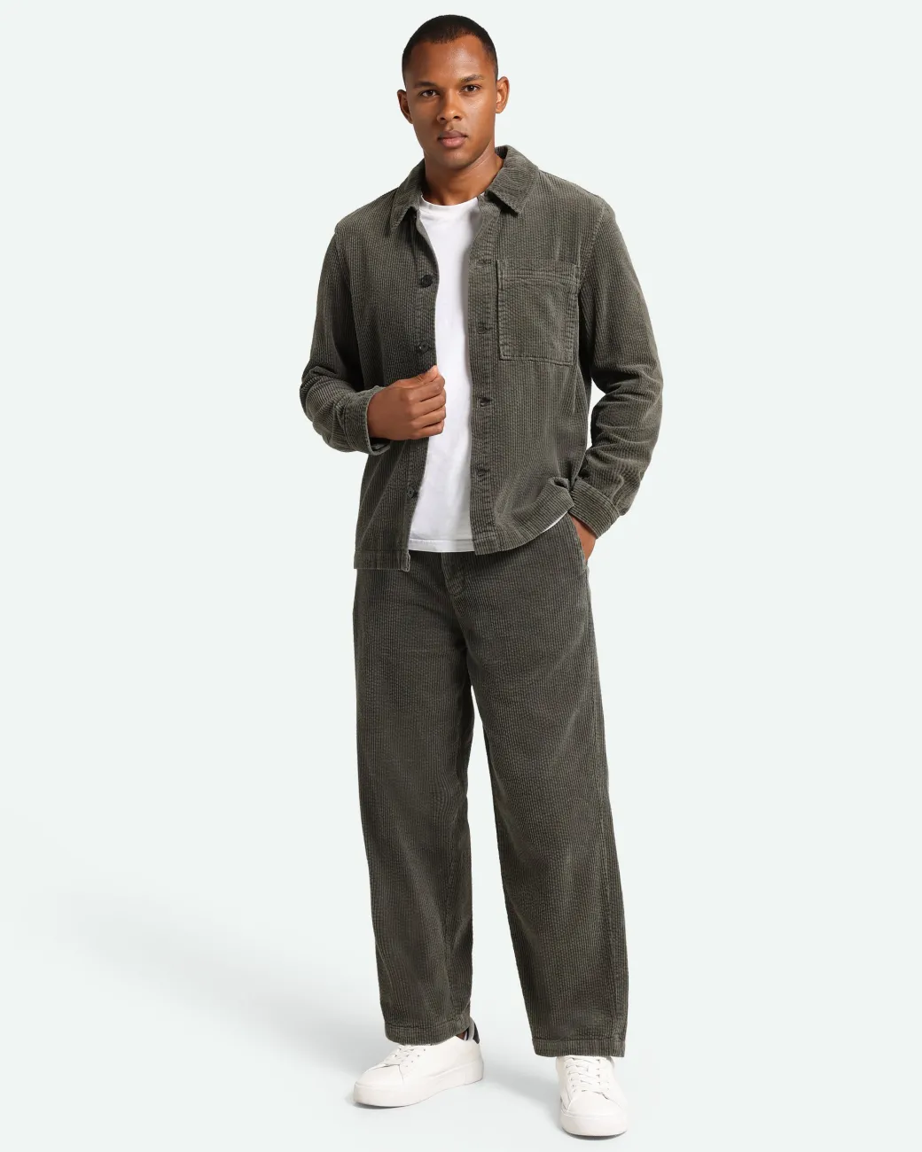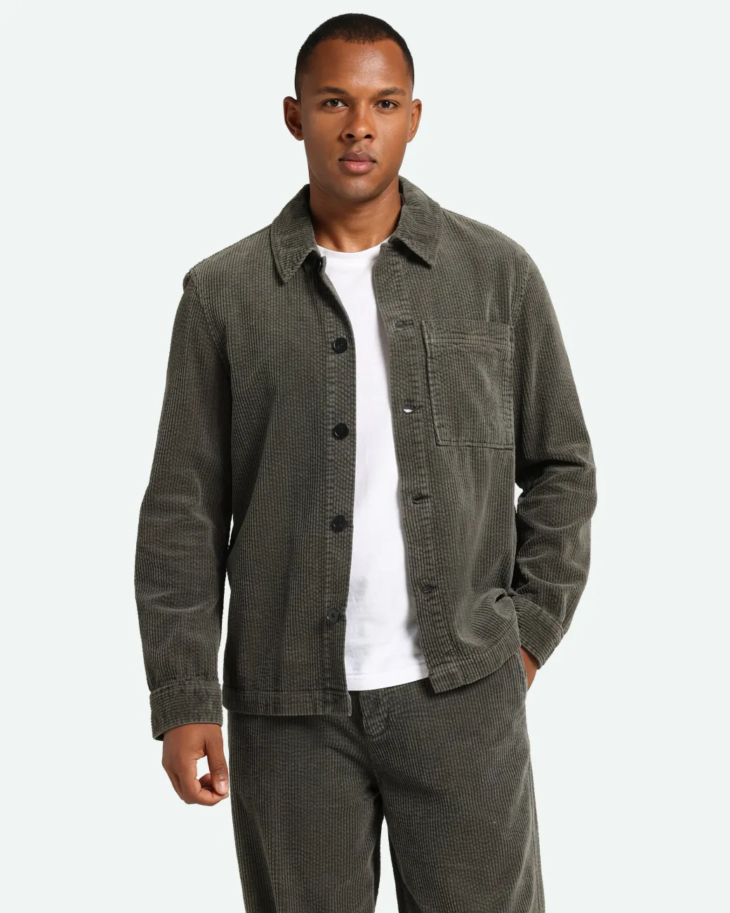 Ezram is a classic corduroy overshirt made from 100% cotton for a comfortable quality. The overshirt has a regular fit and is designed with a chest pocket, a classic collar and buttons. The model is 185 cm tall and wears a size large.