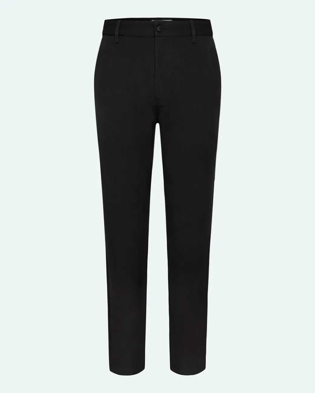 Deacon is a pair of chino pants made from 63% polyester, 33% viscose and 4% elastane for a comfortable quality. The pants has a regular fit and is designed with two front- and back pockets. The model is 185 cm tall and wears a size 32.