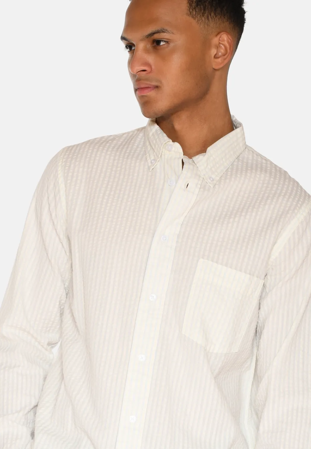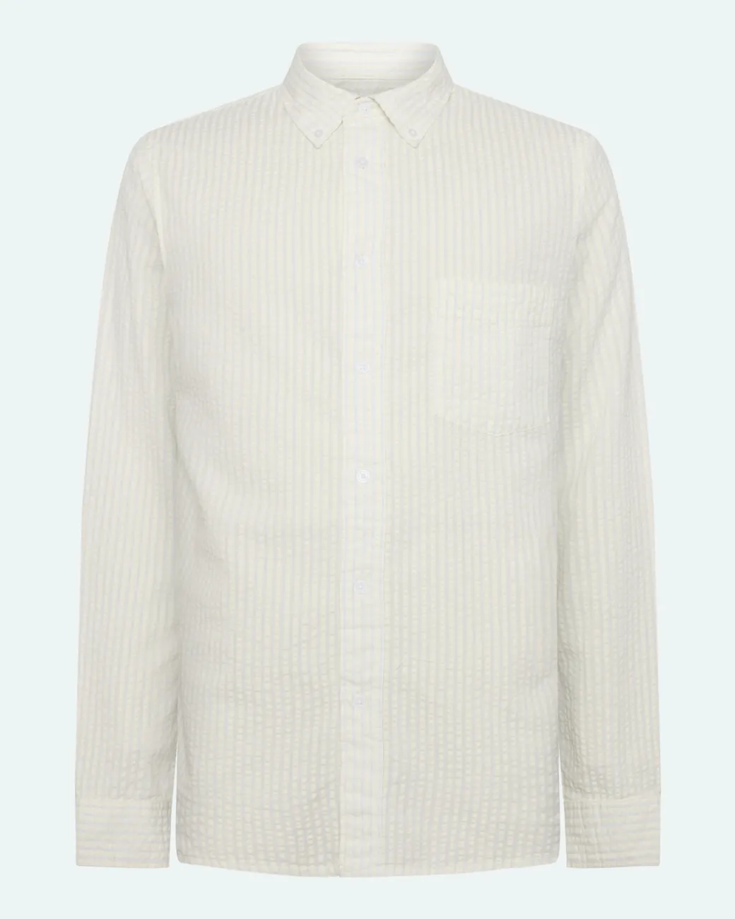 This classic men’s seersucker shirt, made from 100% cotton, offers both style and comfort. The soft cotton fabric provides a comfortable and breathable fit, while the seersucker pattern adds a subtle yet interesting visual element. The shirt has a classic fit that ensures a sharp silhouette while allowing freedom of movement.The shirt is detailed with classic shirt details such as a collar, button closure and chest pocket, which contribute to the timeless and functional design. This shirt is ideal for both formal and casual occasions and can be easily styled with chinos, jeans or under a blazer.With its simple yet sophisticated style and distinctive pattern, this shirt is a must-have in any wardrobe looking to combine classic design with a modern twist.