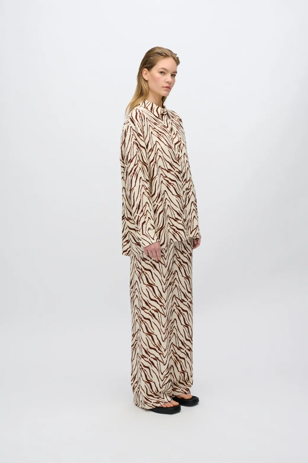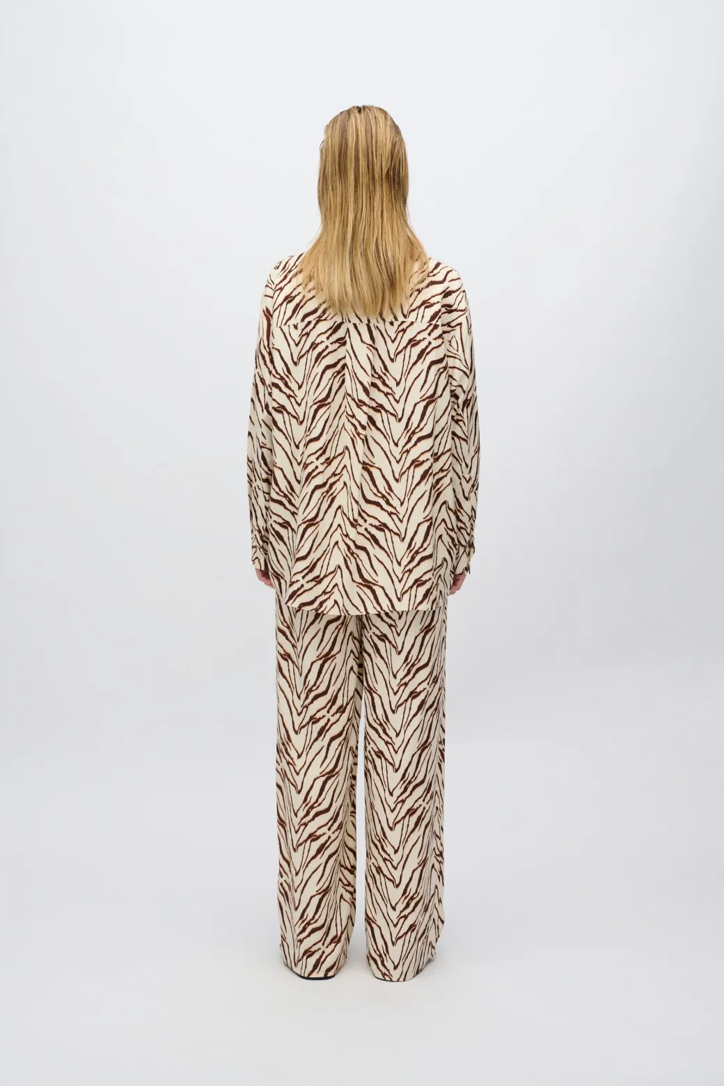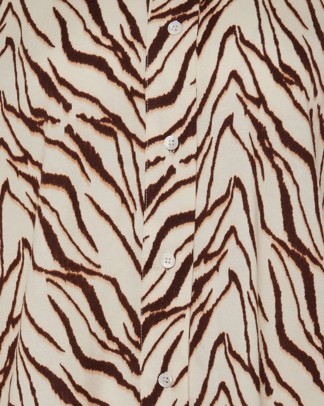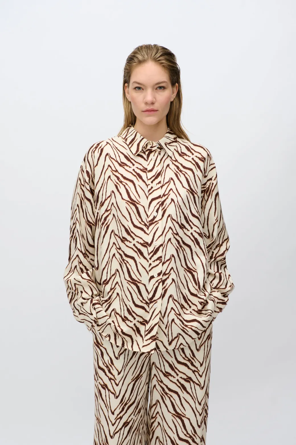 Upgrade your wardrobe with the unique and stylish Harper long sleeve shirt, made from a blend of linen and viscose for a light and comfortable fit. This shirt is designed in an eye-catching zebra print that adds a modern and exclusive touch to any outfit.With a loose fit and classic shirt details such as a collar and full button closure, the Harper shirt is both elegant and functional. It offers a sophisticated look, while providing a casual and comfortable feel, making it perfect for both everyday wear and more formal occasions.Style the Harper shirt with your favorite jeans for a casual look or with a skirt and boots for an updated, elegant style.