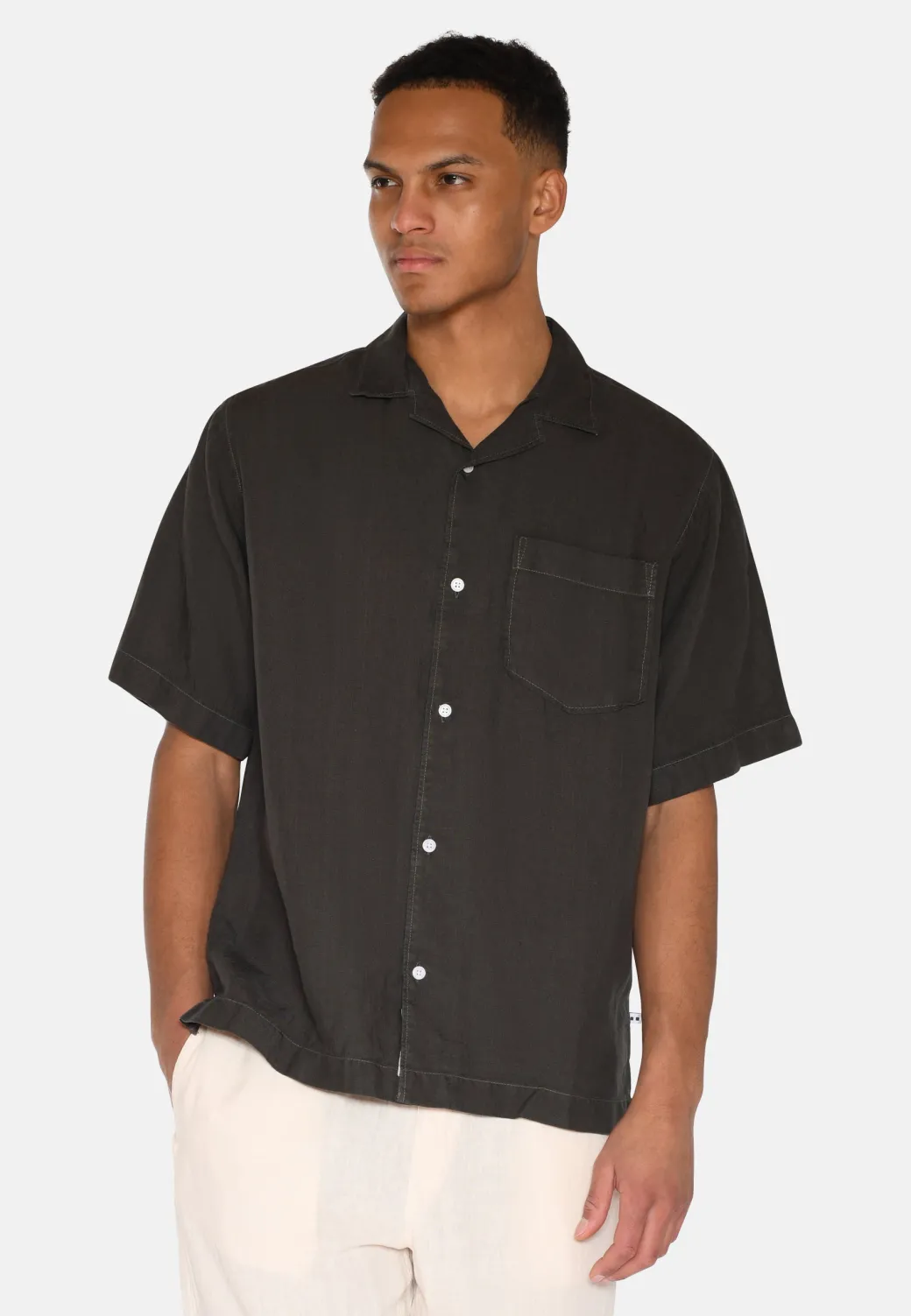 This short-sleeved linen shirt is made from 100% linen, making it both lightweight and breathable – perfect for warmer days. The shirt has a relaxed fit, which provides good freedom of movement and comfort all day long. The classic collar and the continuous button closure give the shirt a stylish and timeless expression, while a single chest pocket adds both functionality and a discreet design element.The linen shirt is a versatile choice that can be styled for both relaxed and more semi-formal occasions. It is ideal for a day at the beach, as a light shirt over a t-shirt or as part of a casual outfit for both weekdays and weekends.