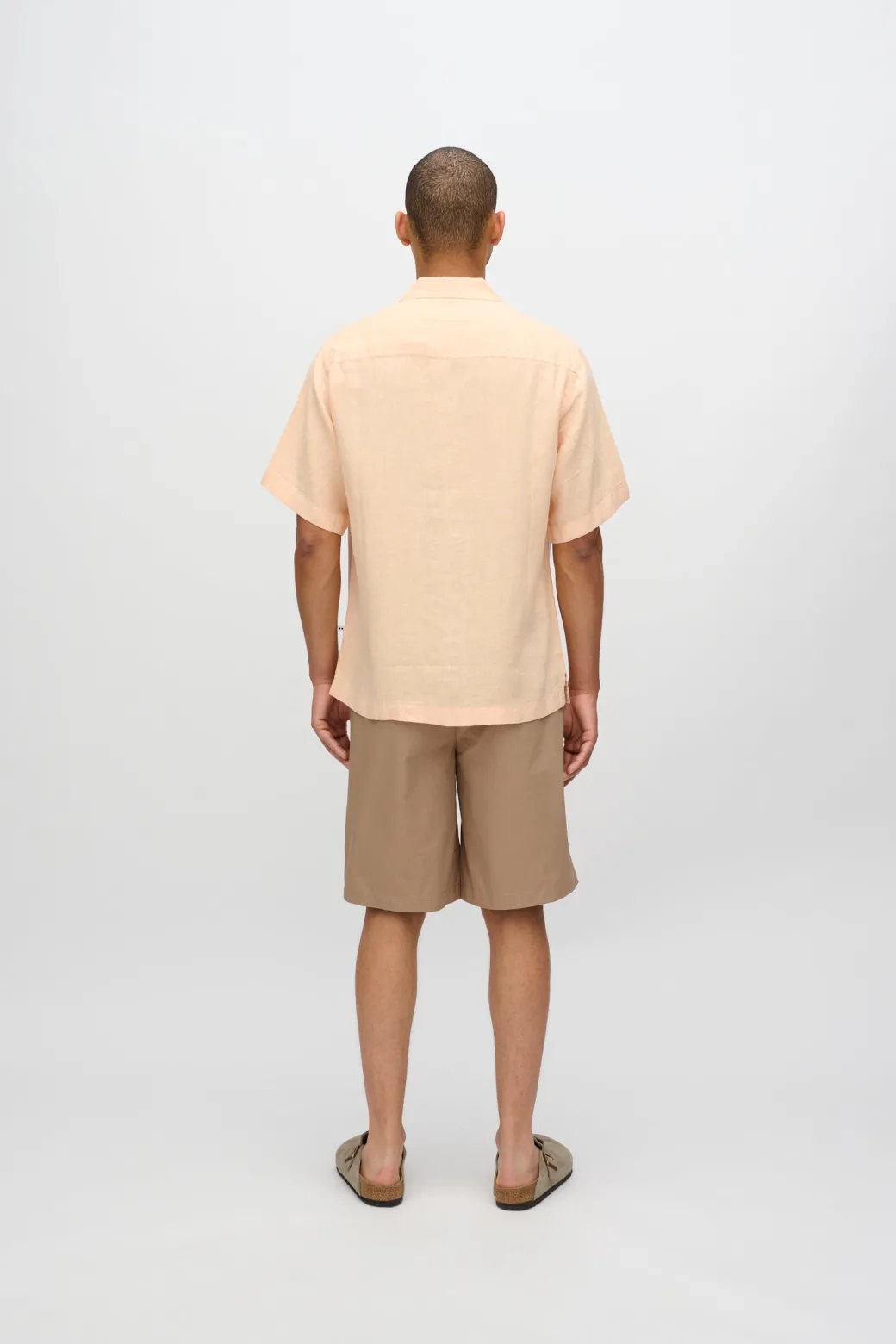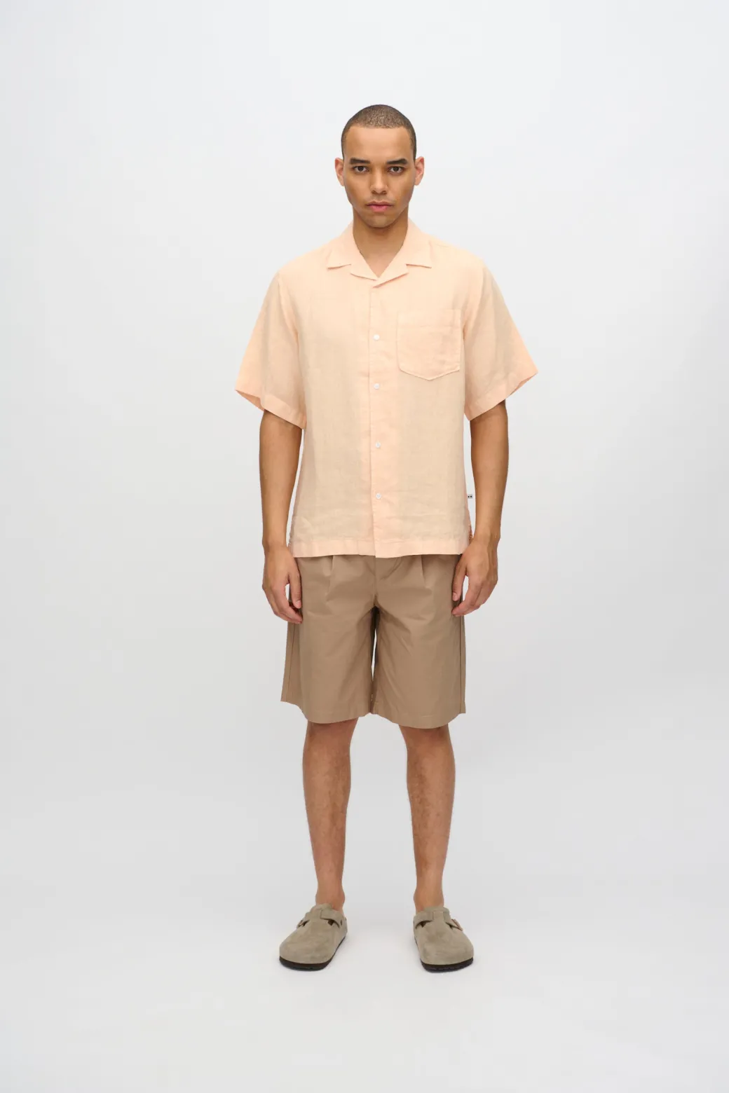 This short-sleeved linen shirt is made from 100% linen, making it both lightweight and breathable – perfect for warmer days. The shirt has a relaxed fit, which provides good freedom of movement and comfort all day long. The classic collar and the continuous button closure give the shirt a stylish and timeless expression, while a single chest pocket adds both functionality and a discreet design element.The linen shirt is a versatile choice that can be styled for both relaxed and more semi-formal occasions. It is ideal for a day at the beach, as a light shirt over a t-shirt or as part of a casual outfit for both weekdays and weekends.