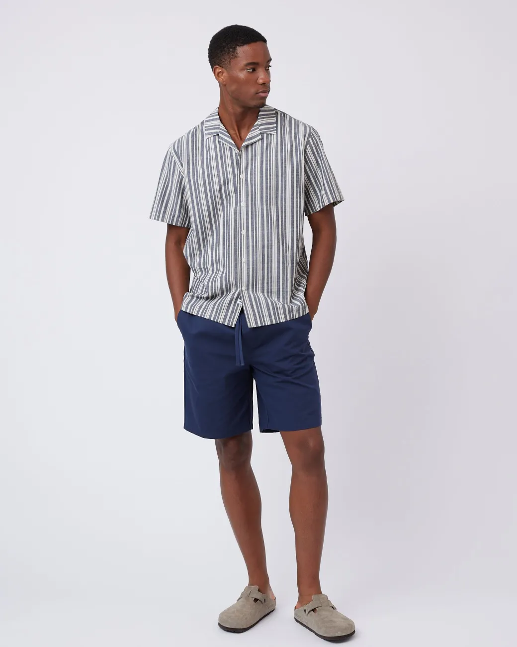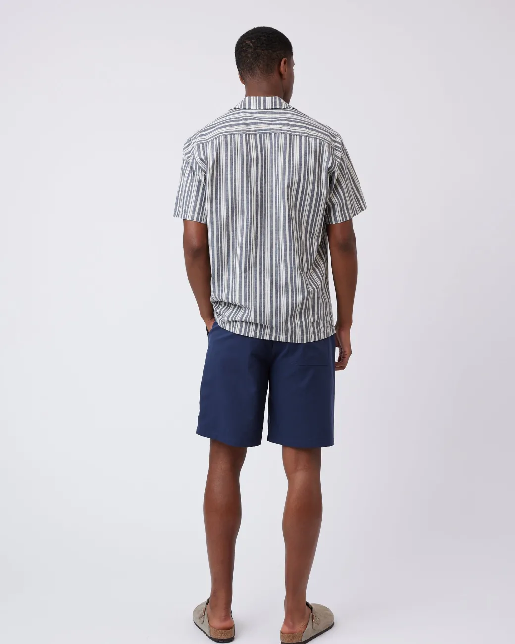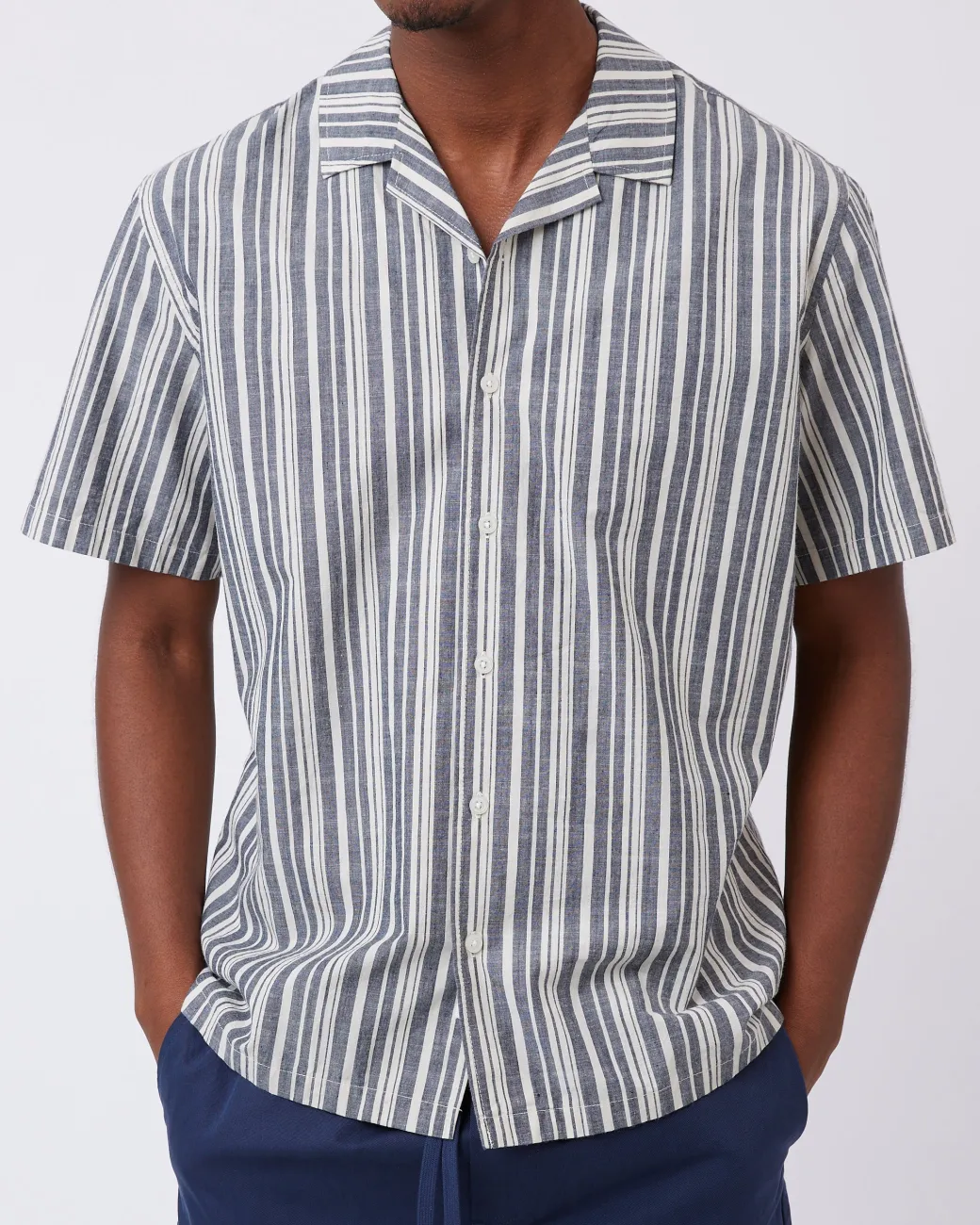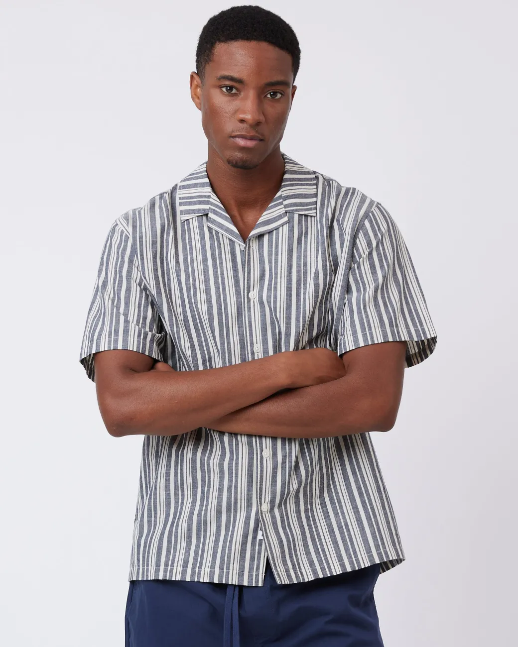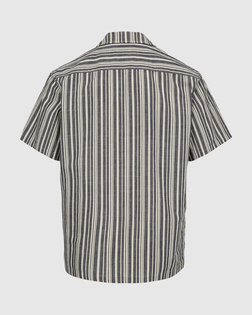 Jole is a short-sleeved shirt made from 100% cotton for a soft and comfortable quality. The shirt has a relaxed fit and is designed in a striped material with a collar and button closure. The model is 185 cm tall and wears a size large.