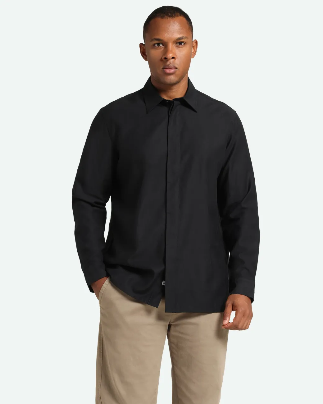 Kader is a long sleeved shirt made from 88% lyocell and 12% polyester for a soft quality. The shirt has a relaxed fit and is designed with a classic collar and a hidden button closure.