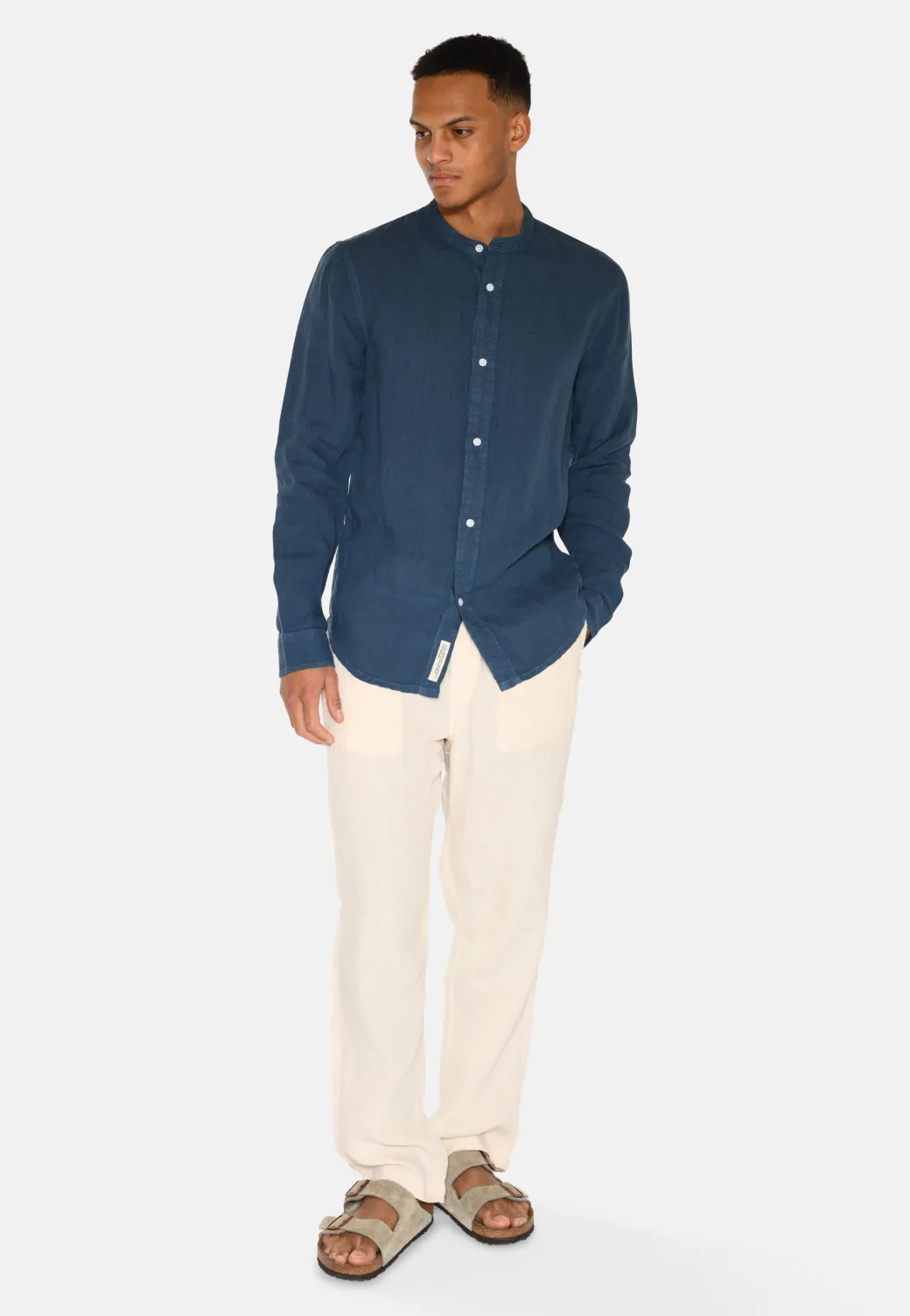 This long-sleeved shirt is made from 100% linen, a lightweight and breathable material that provides a relaxed yet sophisticated fit. The shirt is designed with a stylish mandarin collar that adds a modern twist to the classic shirt design. The button-through closure and simple lines support the minimalist look, making the shirt both timeless and versatile.With its light and airy quality, the shirt is ideal for warmer days, but it can also be easily styled with a jacket or blazer for the cooler months. Wear it with both casual and dressy looks – from a pair of jeans to tailored trousers – and achieve a stylish and modern expression.