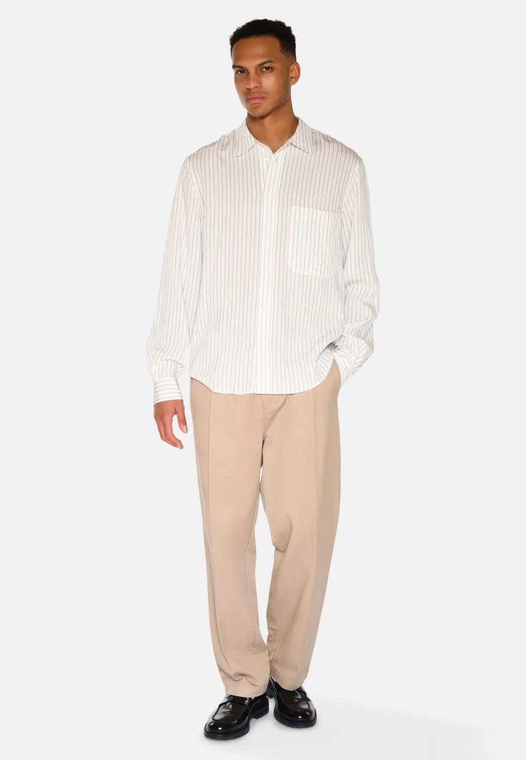 This classic men’s shirt, made from a luxurious blend of modal, polyamide and cupro, combines modern materials with timeless design. The soft, breathable fabric provides a comfortable fit and a silky feel against the skin, making the shirt ideal for both everyday wear and more formal occasions. The shirt is designed with thin stripes, which add a subtle yet sophisticated pattern that adds an extra dimension to the classic look.The classic shirt details such as the collar, chest pocket and button closure support the shirt’s timeless style, and make it easy to combine with both casual and more dressed-up outfits. The slim fit and the fine stripes give the shirt a sharp and polished look, while the lightweight and comfortable construction ensures that it feels as good as it looks.This shirt is an ideal choice for both the office and leisure. It can be styled with both chinos, jeans and trousers, and works perfectly as a layering piece under a blazer or jacket. With its versatility and quality materials, it is an essential part of every men’s wardrobe.