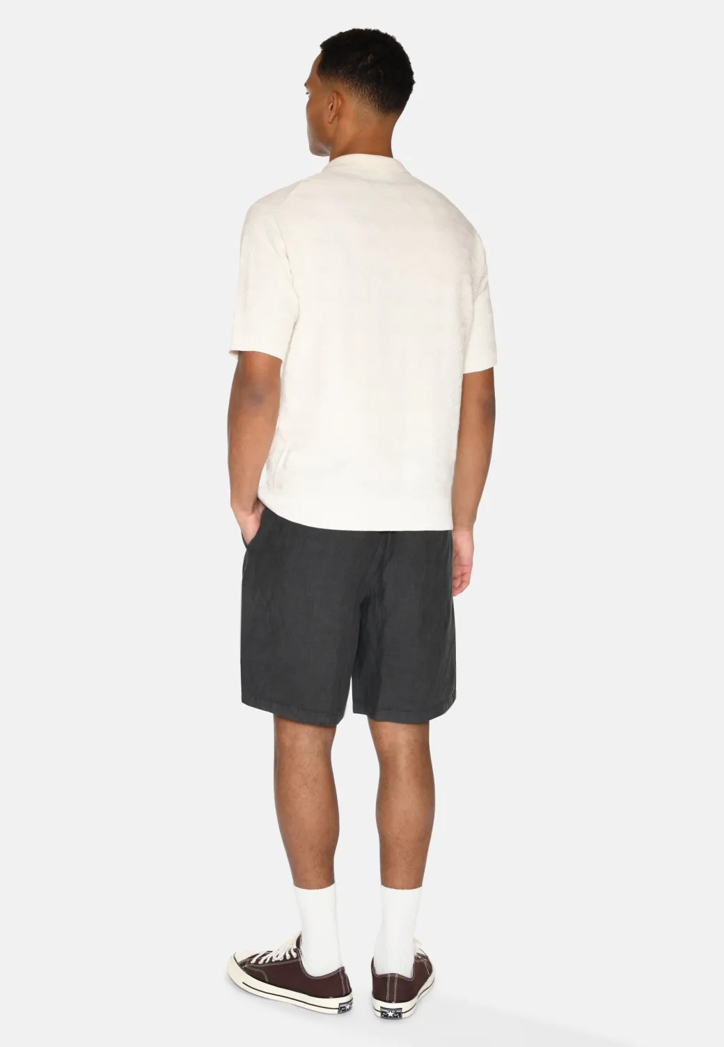 These classic men’s shorts are made from 100% linen, giving them a light, breathable and natural feel – perfect for warm days. Designed with both front and back pockets, as well as an elasticated waist and drawstring, they combine comfort with functionality.The elasticated waist and adjustable drawstring ensure a comfortable fit, while the classic pockets add both practical storage and a stylish touch. The simple, timeless silhouette makes the shorts easy to style for both casual and more polished looks.Wear them with a light t-shirt or shirt for a casual summer look, or combine them with a lightweight polo shirt for a more sophisticated expression. A must-have for your summer wardrobe, providing both comfort and style.