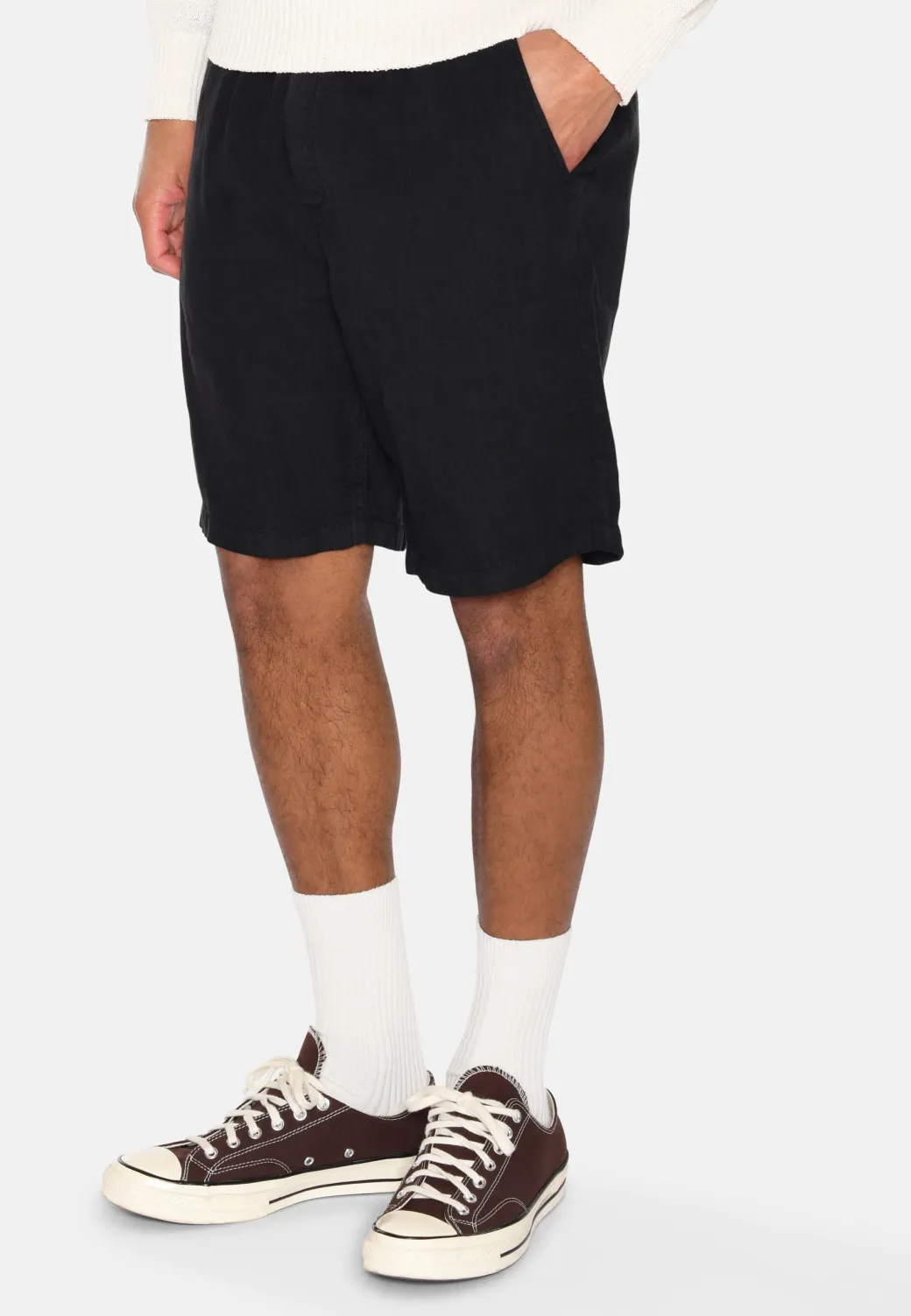 These classic men’s shorts are made from 100% linen, giving them a light, breathable and natural feel – perfect for warm days. Designed with both front and back pockets, as well as an elasticated waist and drawstring, they combine comfort with functionality.The elasticated waist and adjustable drawstring ensure a comfortable fit, while the classic pockets add both practical storage and a stylish touch. The simple, timeless silhouette makes the shorts easy to style for both casual and more polished looks.Wear them with a light t-shirt or shirt for a casual summer look, or combine them with a lightweight polo shirt for a more sophisticated expression. A must-have for your summer wardrobe, providing both comfort and style.