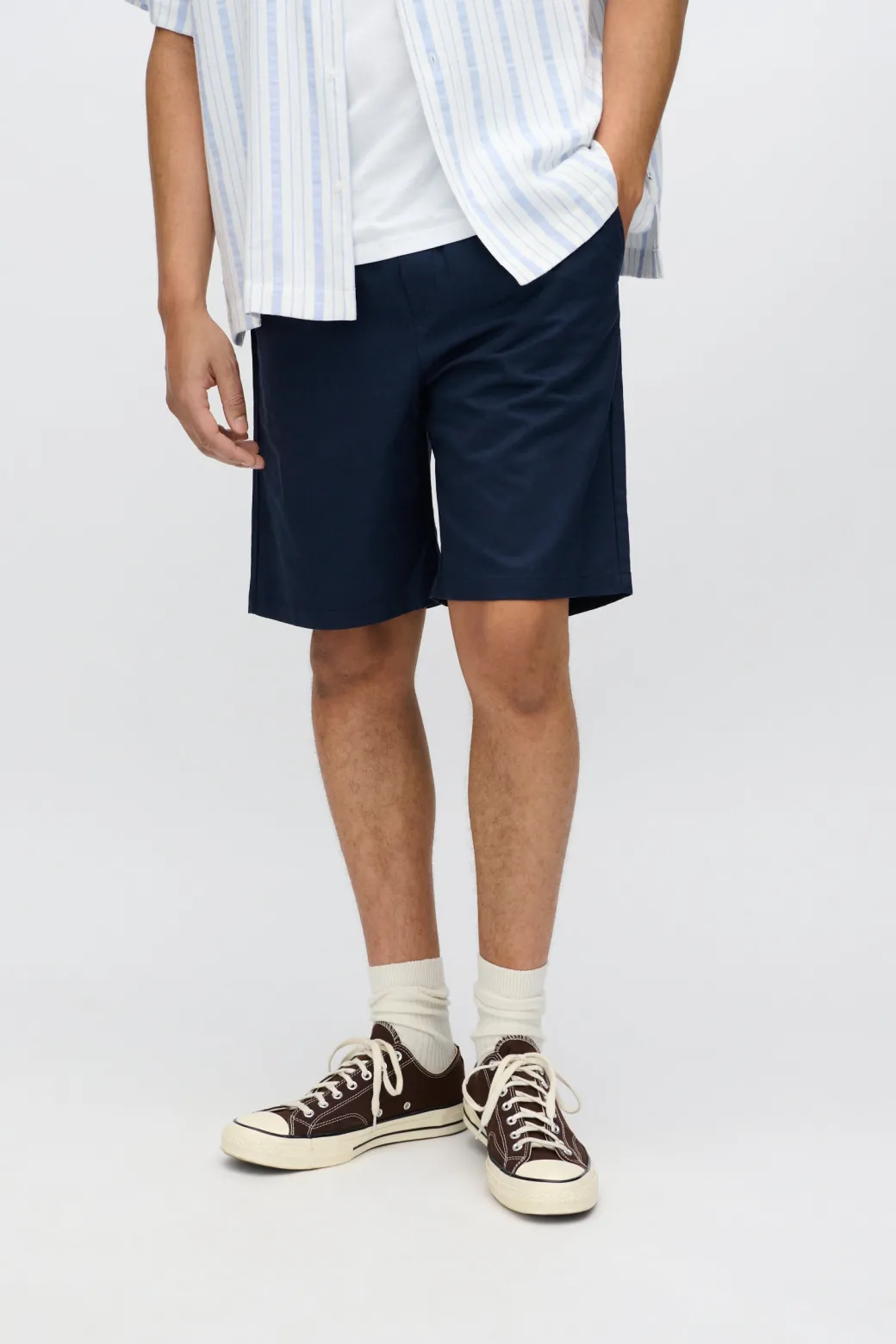 These men’s shorts are made from a combination of cotton and lyocell, giving them a light and comfortable fit. The soft texture of the cotton mixed with the smooth properties of lyocell creates a pair of shorts that are both comfortable and breathable. The design is classic and functional with an elasticated waist for a flexible and comfortable fit, as well as a drawstring that allows for waist adjustment for a tailored feel.Front and back pockets add a practical element so you can easily store your small items. Ideal for warm days, the shorts can be styled in many ways – either with a t-shirt for a casual look or a light shirt for a more sophisticated, yet casual, outfit.