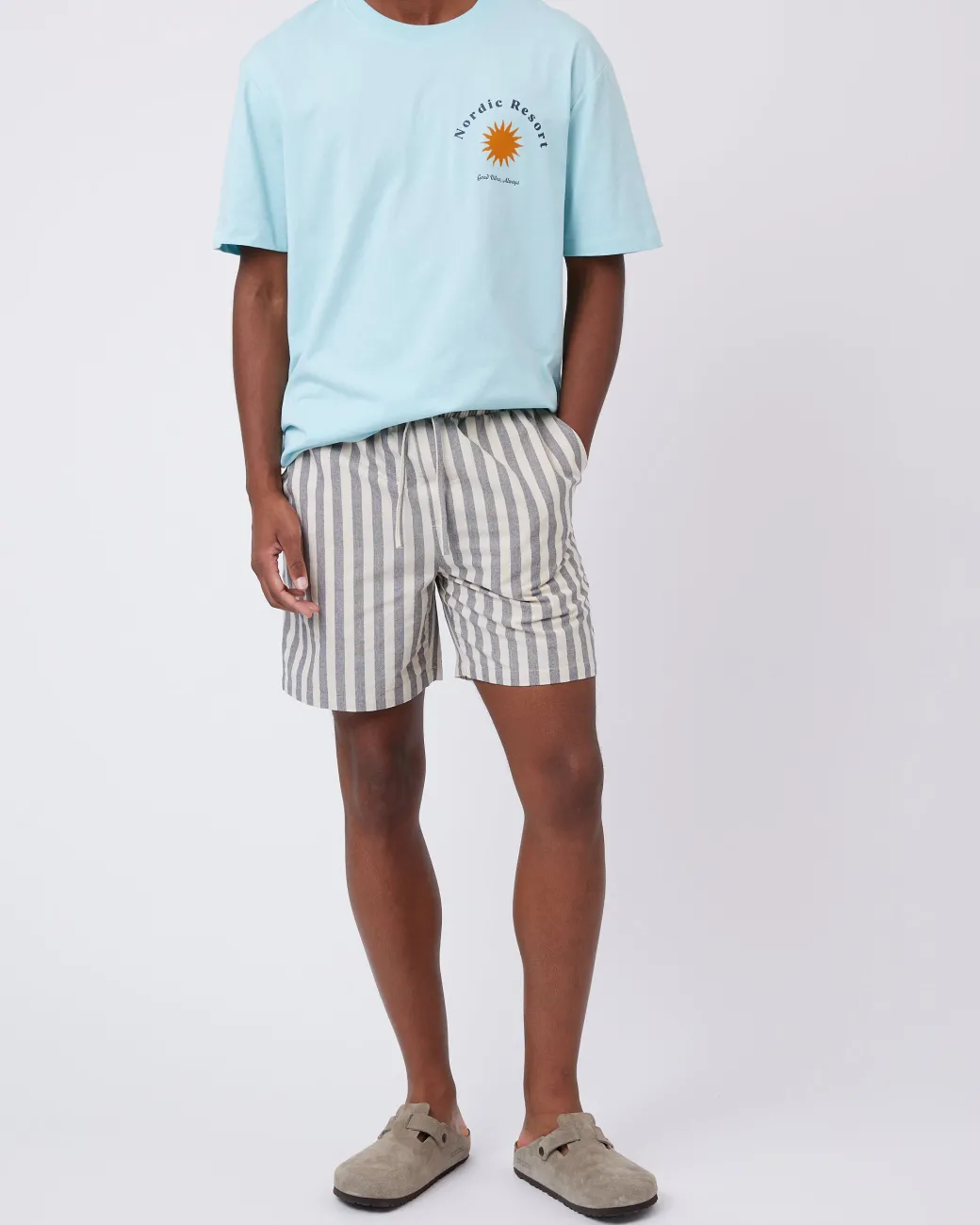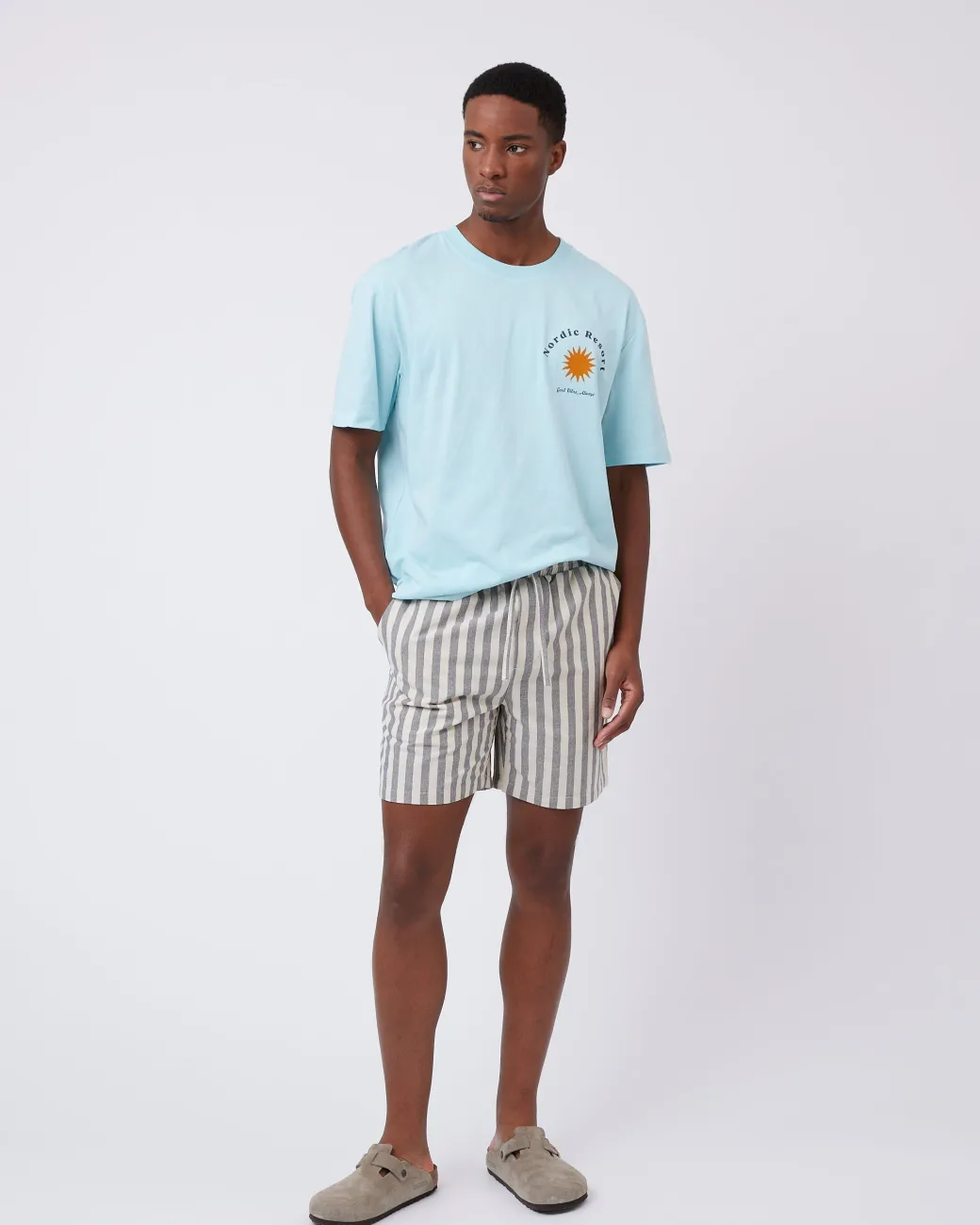 Jennus is a pair of casual shorts made from 100% cotton for a comfortable quality. The shorts have a regular fit and are designed with two front pockets and one back pocket, elastic and a tie at the waist. The model is 185 cm tall and wears a size large.