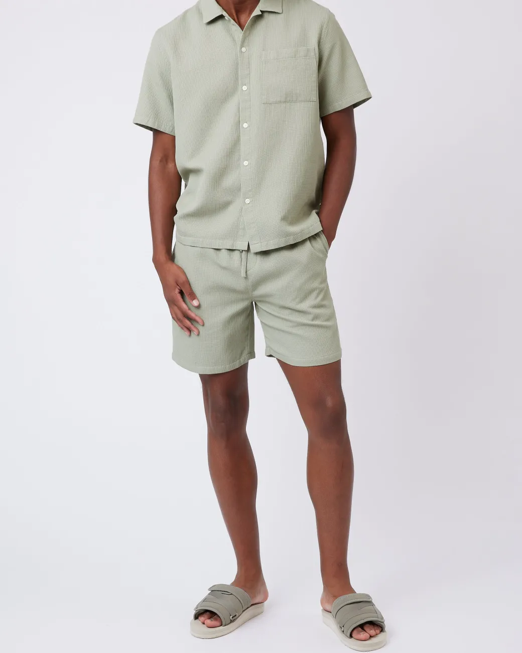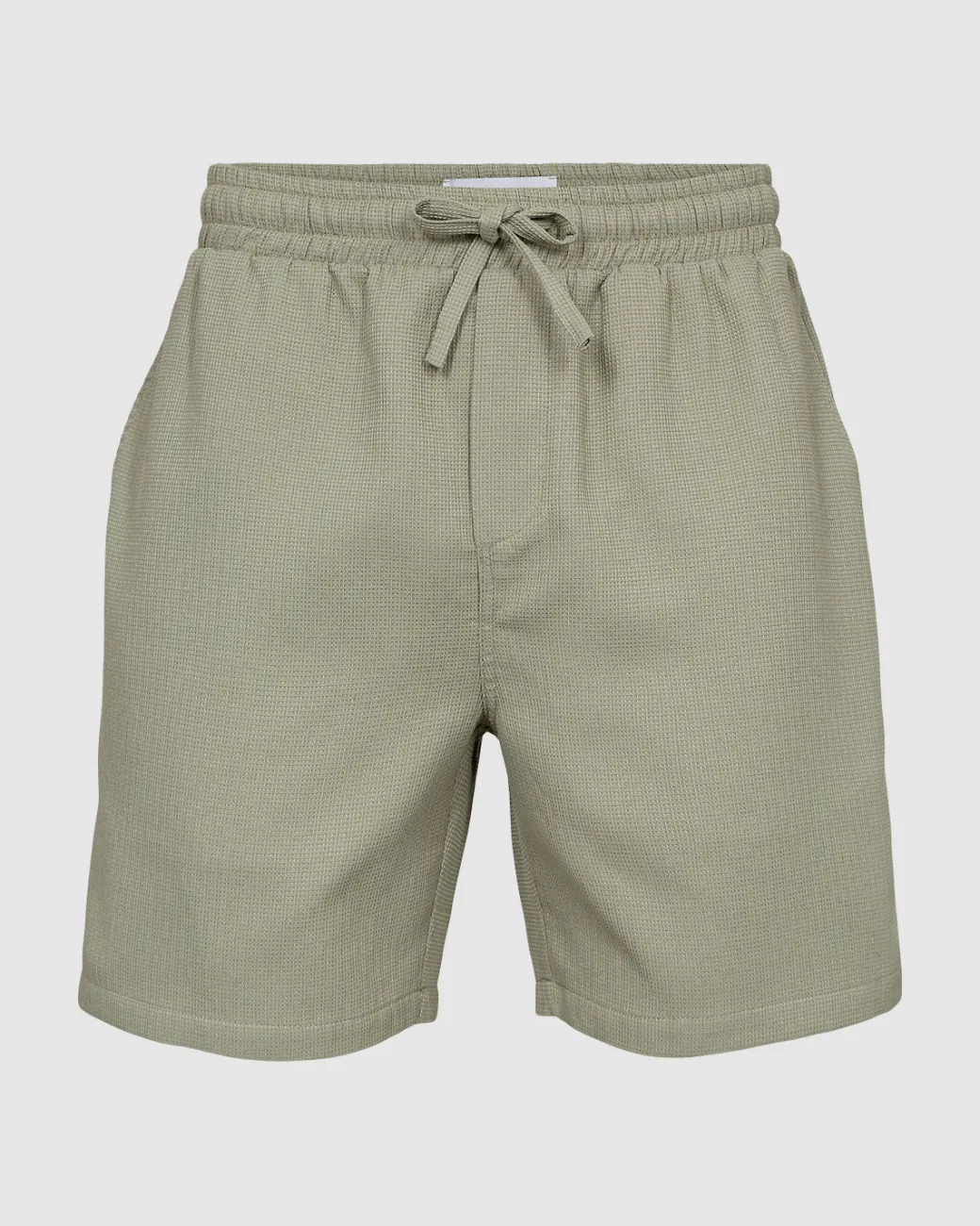 Jennus are a pair of casual shorts made from cotton and polyester for a comfortable quality. The shorts have a regular fit and are designed with two front pockets and one back pocket, elastic and a tie at the waist. The model is 185 cm tall and wears a size large.
