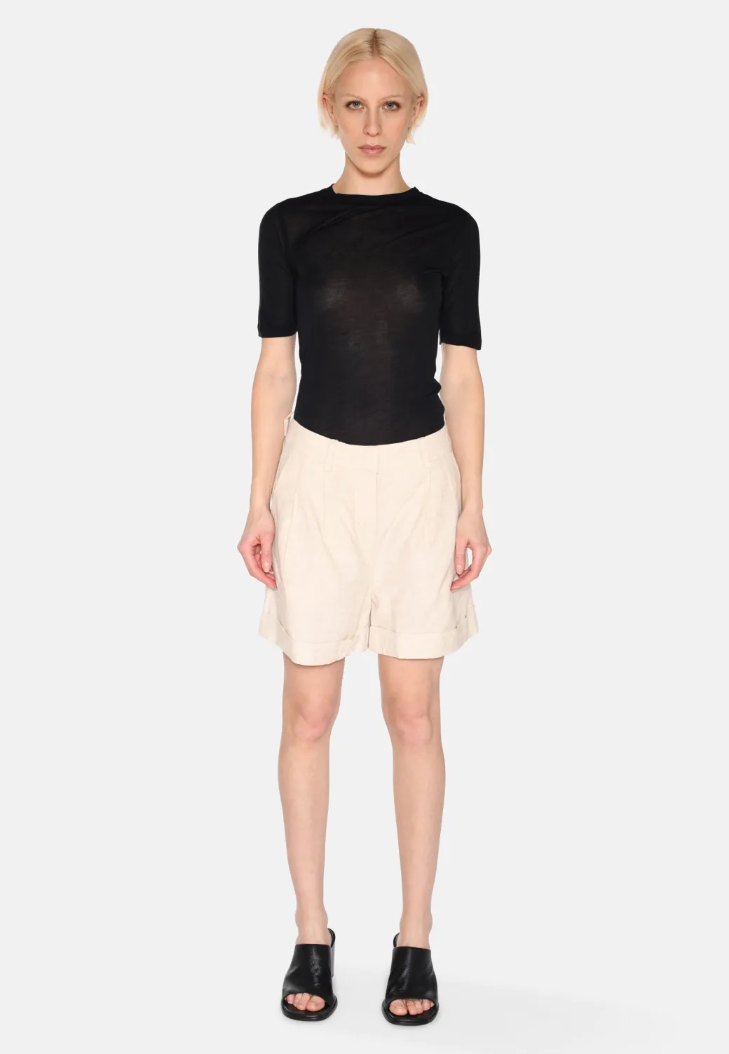 Get a timeless and comfortable style with our Selby shorts made from a lightweight and breathable blend of viscose, linen and cotton. The pleated details on the legs give the shorts a sophisticated touch, while the belt loops add functionality and make them easy to style with your favorite belt.The shorts combine casual elegance with practical details, making them ideal for both everyday and special occasions. The pleated design on the legs adds a modern edge, while the material ensures a light and comfortable fit.Pair the shorts with a simple shirt or top for a casual look, or add a fitted blazer for a more elegant style. Use a belt to accentuate the waist, and add sandals or loafers for a complete outfit.These shorts combine versatility, comfort and style. With their modern design and luxurious materials, they are an essential part of a well-dressed and functional wardrobe.