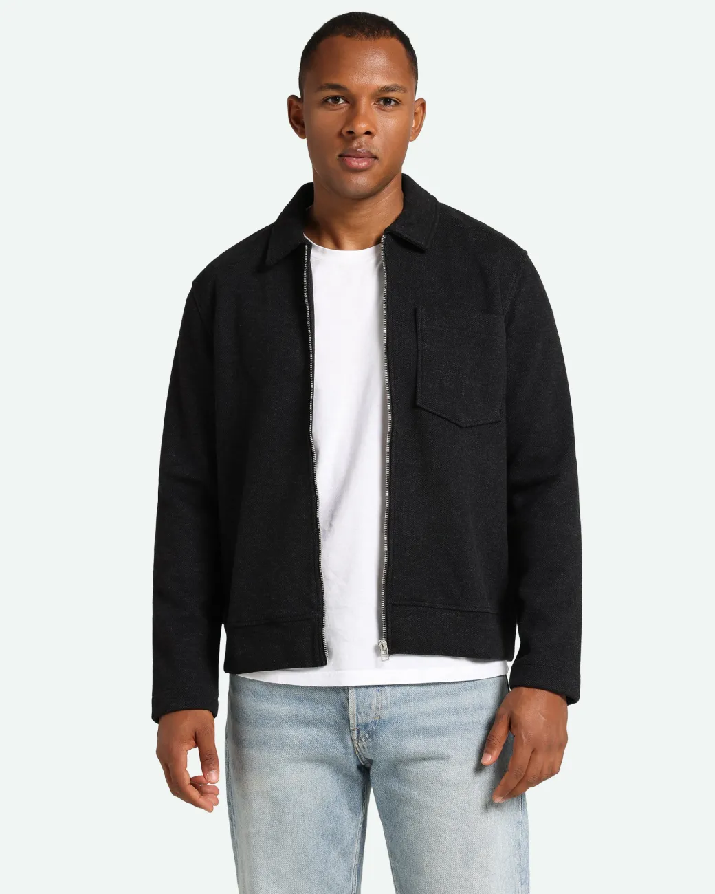 Waylan is a zip-up sweatshirt made from 68% polyester, 29% viscose and 3% elastane for a soft and comfortable quality. The sweatshirt has a regular fit and is designed with a chest pocket, a collar and a zipper. The model is 185 cm tall and wears a size large.