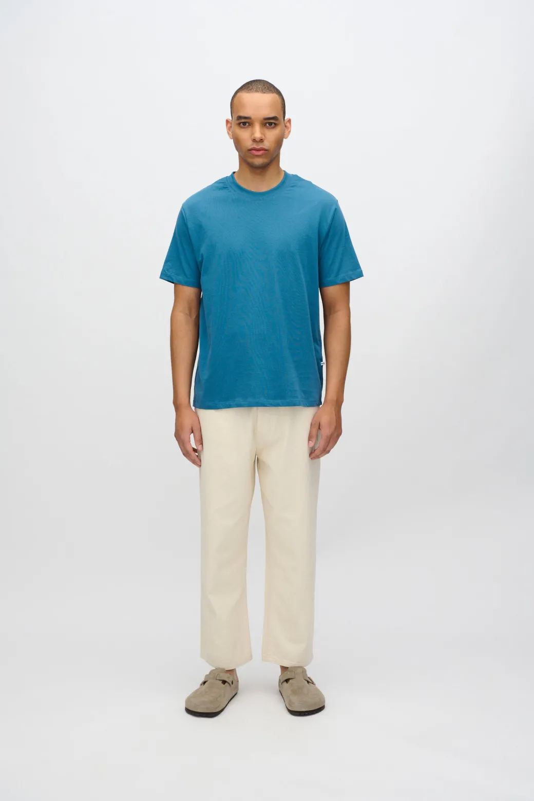 Aarhus is a classy short-sleeved t-shirt crafted from 100% organic cotton for a comfortable quality. The t-shirt has a relaxed fit and features a crewneck with rib edges. The model is 188 cm tall and wears a size large.