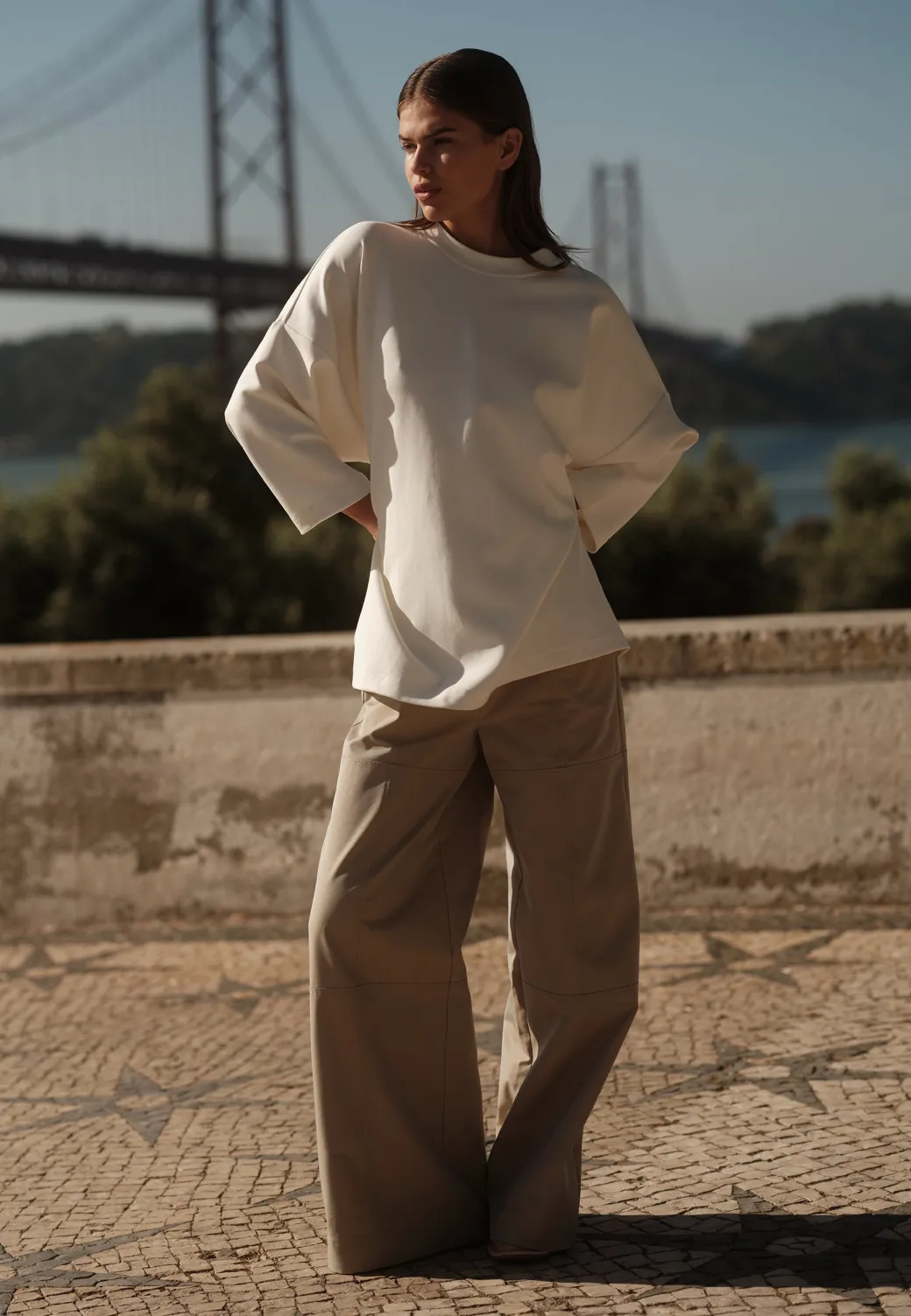 Experience the ultimate in comfort and style with our oversized Norah t-shirt, combining the best of cotton, polyester and elastane. This t-shirt is created to give you a relaxed yet modern look that is both practical and trendy. Perfect for everyday wear when you want a casual outfit with a sophisticated twist.The oversized fit provides a relaxed and lightweight silhouette, while the material mix ensures both softness and stretch. The t-shirt is designed with a classic crew neck and short sleeves, making it ideal for both layering and as a standalone top.The cotton provides a natural, soft feel against the skin, while polyester and elastane add stretch and durability. The lightweight material makes the t-shirt perfect for both warm and cooler days when you want a style that combines comfort and quality.The t-shirt is available in a range of neutral and timeless colors such as black, gray and white, making it easy to style with jeans, leggings or skirts.This oversized t-shirt offers both style and comfort in one design. With its versatile fit and soft materials, it is a must-have in any wardrobe – perfect for both casual and more sophisticated looks.